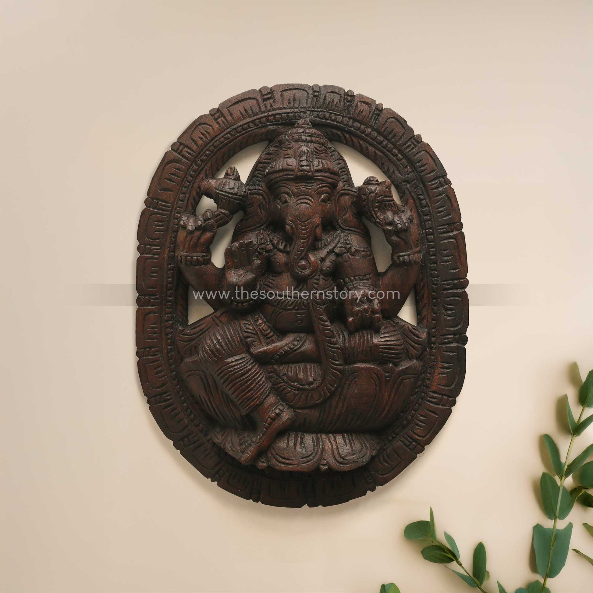 Ganesha Wooden Carved Wall Panel (15 inch)